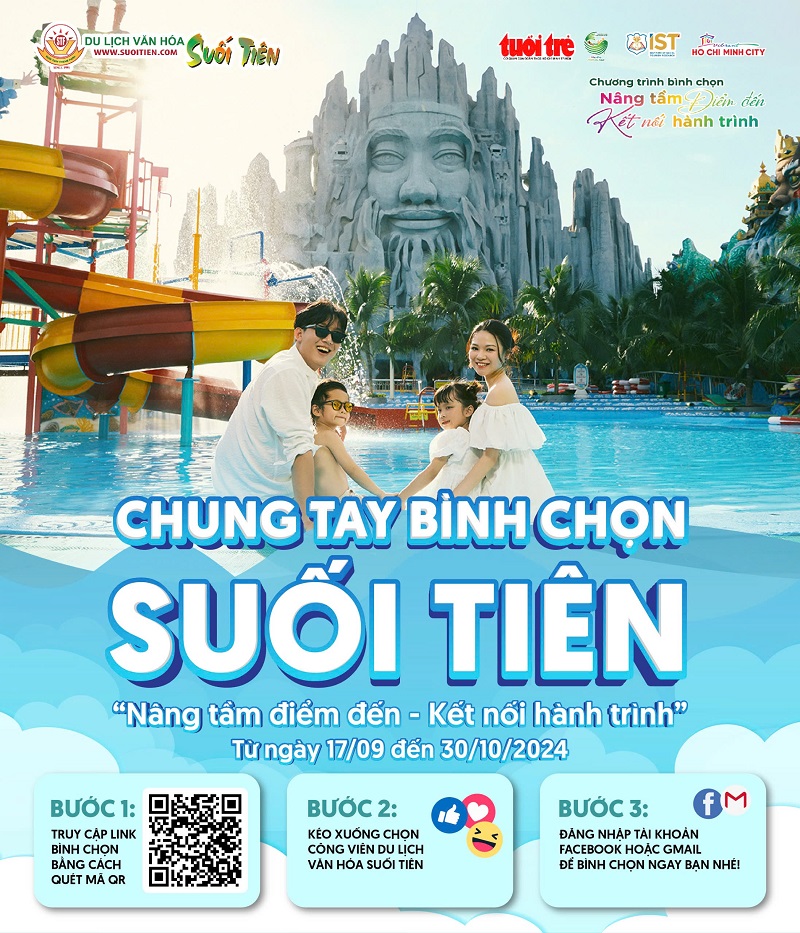 Hãy cùng đồng hành cùng Suối Tiên trong hành trình chinh phục danh hiệu một trong những “Điểm đến du lịch hấp dẫn TP.HCM và 13 tỉnh, thành đồng bằng sông Cửu Long” năm 2024 thông qua chương trình bình chọn với chủ đề "Nâng tầm điểm đến - Kết nối hành trình".