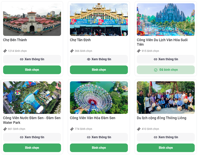 Đến nay, chương trình bình chọn đã có 126 điểm đến du lịch đăng ký tham gia chương trình bình chọn (có sự xác nhận đủ điều kiện tham gia của 14 đơn vị liên kết). Trong đó, tại TP.HCM là 50 điểm đến bao gồm Bảo tàng TPHCM, Bảo tàng Lịch sử TPHCM, Bảo tàng Áo dài, Bến Nội đô – Thuyền Nhiêu Lộc, Chợ Bình Tây, Chợ Bến Thành, Công viên Du lịch Văn hóa Suối Tiên, Du lịch Cộng đồng Thiềng Liềng, Đường Sách TPHCM,…