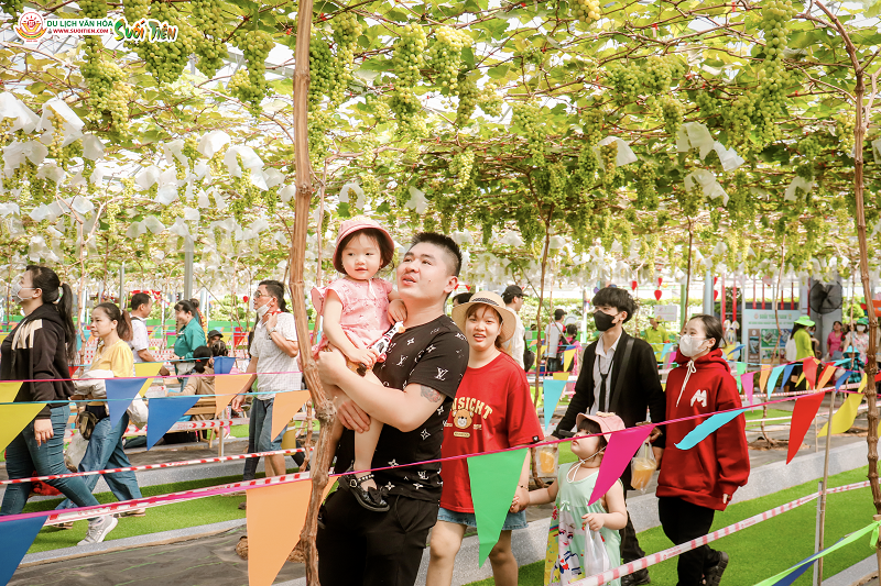 Dịp Lễ này đến Suối Tiên Farm, du khách sẽ được tham quan miễn phí vườn nho mẫu đơn và vườn sung Mỹ đang vào mùa chín rộ. Bên cạnh đó, du khách có thể đăng ký trải nghiệm hái trái và thưởng thức trái tại vườn cũng như mua mang về làm quà tặng ý nghĩa cho sức khỏe của những người thân yêu.