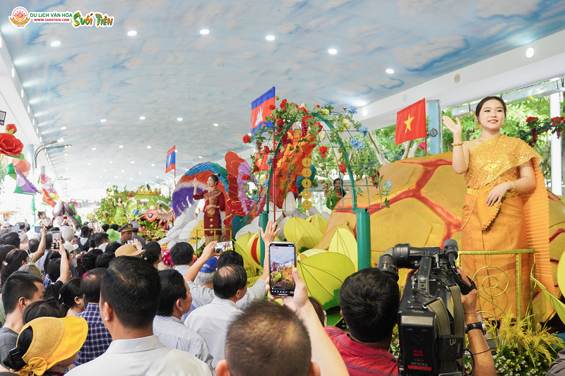 Đến KDL Suối Tiên dịp lễ này, du khách sẽ được hòa mình trong không gian nghệ thuật đầy sắc màu và bất ngờ với những tiết mục biểu diễn vô cùng đặc sắc. Từ show diễu hành “Suối Tiên Farm rẽ sóng vươn mình hội nhập” được trang trí theo chủ đề hội nhập - giao lưu văn hóa - nghệ thuật với các nước trong khối ASEAN cho đến vở diễn kinh điển sân khấu hóa Sơn Tinh Thủy Tinh. Những chương trình này không chỉ mang đến những giây phút thư giãn và giải trí, mà còn là cơ hội để du khách hiểu sâu hơn về văn hóa lịch sử dân tộc và giá trị của sức mạnh đoàn kết hội nhập quốc tế trong thời đại mới.