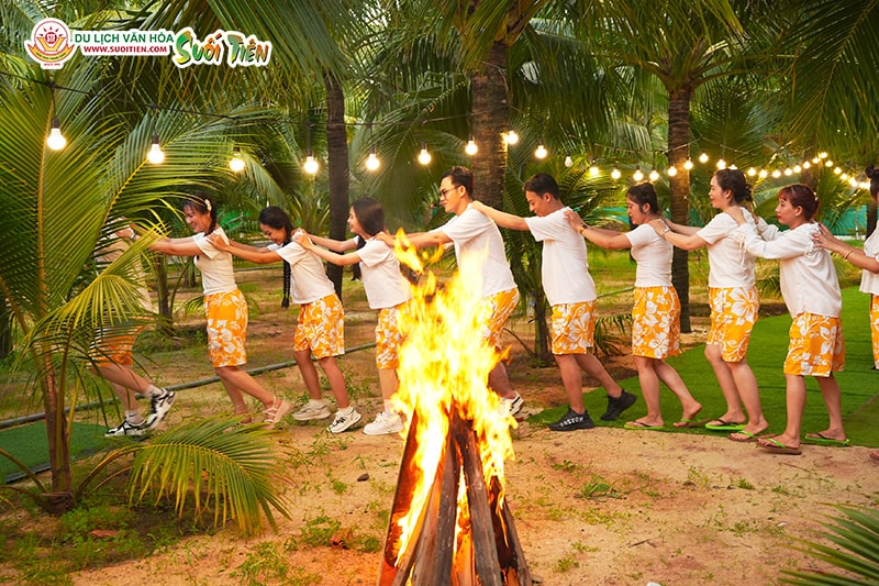 Hơn nữa, khách đăng ký gói camping sẽ được ngồi trên xe lửa tham quan toàn bộ Khu Du lịch Suối Tiên, tham quan Suối Tiên Farm và tự tay hái trái. Buổi tối sẽ là thời gian thư giãn với các hoạt động nướng BBQ, đốt lửa trại, giao lưu văn nghệ, kể chuyện dưới ánh sao, tạo nên một không gian ấm cúng, tràn đầy kỷ niệm đáng nhớ.