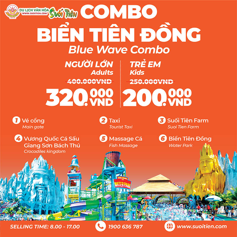 Ngoài ra, Suối Tiên còn cung cấp combo Biển Tiên Đồng với giá 320.000 VNĐ cho người lớn và 200.000 VNĐ cho trẻ em, giúp du khách thoải mái tham gia các trò chơi tại cả khu vực công viên khô và công viên nước.