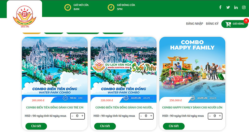 Đặt vé online tại trang web chính thức của Suối Tiên suoitien.com/chon-ve hoặc qua các đối tác trực tuyến như: Traveloka, Klook, Dealtoday, Minh Gia Huy, Đivui, Vintrip, Funny life, Hotdeal Vnpay, N.HaFu, Gift Pop, Trip. com, Emoi. io, VietAir. tv