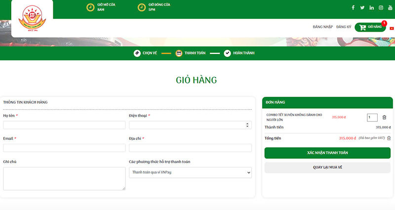 Hiện tại, Quý khách có thể đặt vé Combo “Tết Xuyên Không” bằng hai hình thức Online và tại Quầy với giá vô cùng ưu đãi: