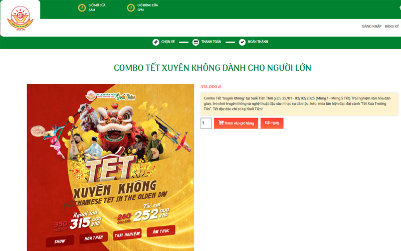 Bước 1: Để mua vé Combo “Tết Xuyên Không”, vui lòng truy cập đường link mua vé trên website Suối Tiên TẠI ĐÂY.