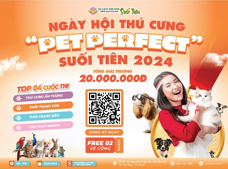 Ngày hội thú cưng “Pet Perfect” Suối Tiên 2024 sẽ được Khu Du Lịch Văn Hóa Suối Tiên tổ chức vào ngày 20/10 tại sân khấu lối vào Kỳ Lân Cung.