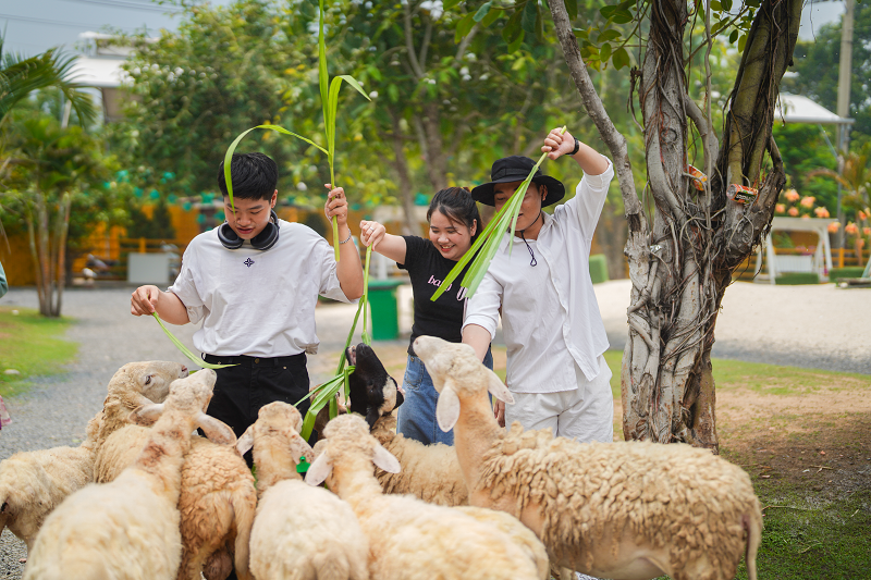 Trải nghiệm chơi với cừu, cho cừu ăn tại Farm Cừu xanh mát