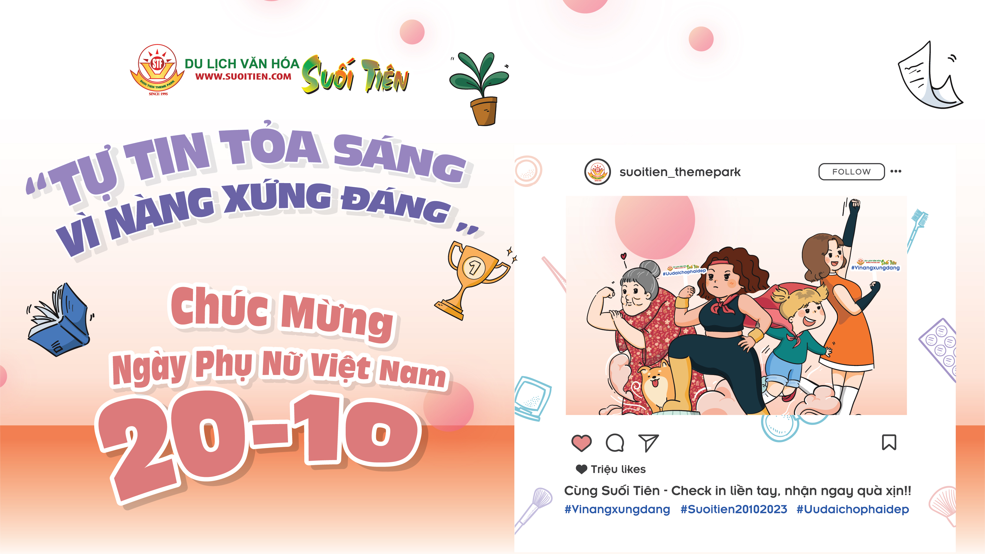 Trong guồng quay hối hả của nhịp sống hiện đại, bên cạnh những món quà ngọt ngào, những bó hoa tươi thắm thì một chuyến du lịch trải nghiệm khám phá DLVH Suối Tiên và tham gia chương trình Mini Game “Tự tin tỏa sáng - Vì nàng xứng đáng” sẽ là lựa chọn tuyệt vời để ngày 20-10 trở nên ý nghĩa cùng người thân.