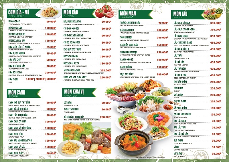 THỰC ĐƠN NHÀ HÀNG PHỐ LẨU