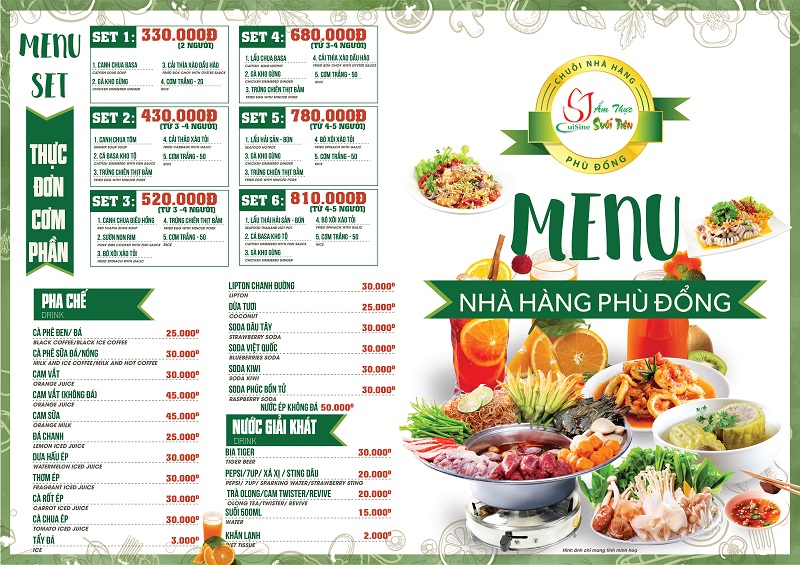 THỰC ĐƠN NHÀ HÀNG PHÙ ĐỔNG