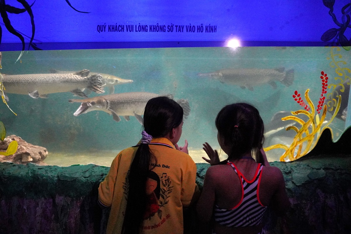 Quý khách như lạc vào lòng đại dương thu nhỏ, ngắm nhìn hơn 100 loài sinh vật biển bơi lội trong các bể chứa với lớp kính dày 32mm, có khoảng 30 - 40 loài hải quỳ, san hô sống, cá hoàng hậu, cá bò bống bi, cá mập, rùa biển,… quý hiếm trên thế giới. Đặc biệt Thủy Cung hiện có hải tượng biển (dài trên 1m) - một trong những loài cá quý hiếm nhất hiện nay.