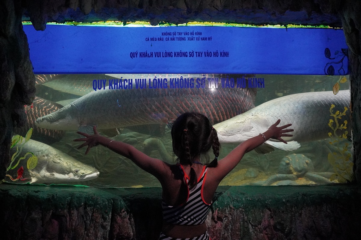 Với thể tích 100.000 lít nước, Thủy Cung được thiết kế đặc biệt bên trong hình rồng với hình dạng uốn khúc.