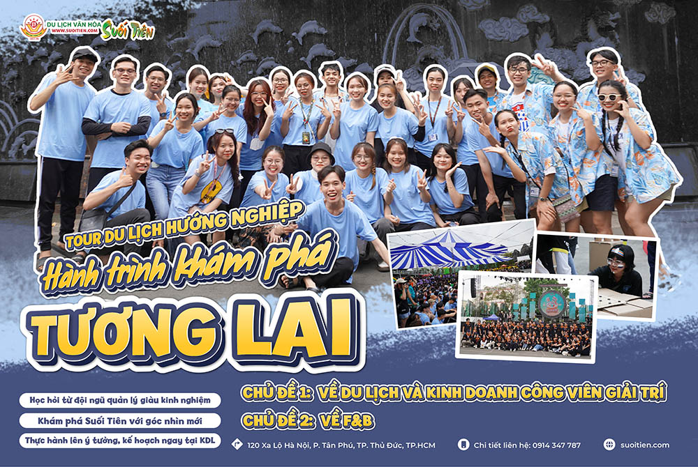Tour du lịch hướng nghiệp Suối Tiên hứa hẹn mang đến những kiến thức bổ ích về ngành dịch vụ du lịch, ngành F&B giúp bạn trẻ định hướng rõ ràng hơn về công việc trong tương lai. Đồng thời mang đến chuyến đi dã ngoại thú vị cùng thầy cô và bạn học, xây dựng kỷ niệm đáng nhớ về một thuở đang ngồi trên ghế nhà trường.