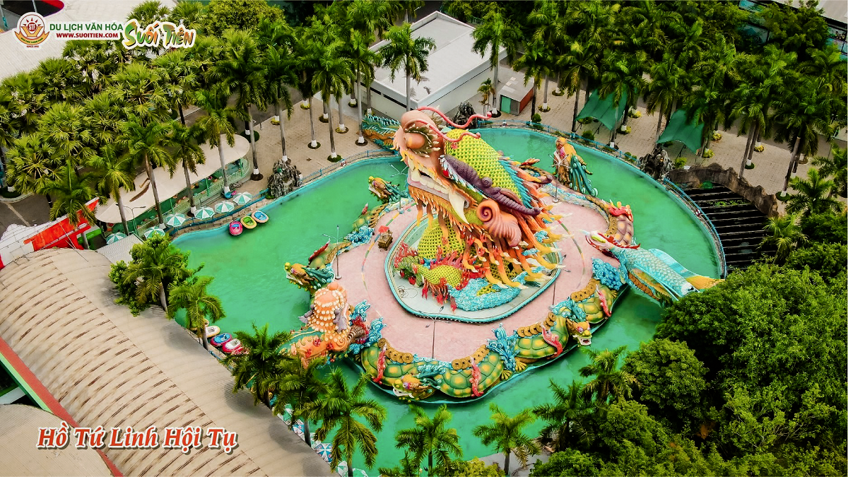 Tứ Linh Hội Tụ - một quần thể biểu tượng cho sự an lành, hạnh phúc, yên vui được khánh thành vào dịp tết Nguyên Đán 2003. Đảo Thần Rồng có 5 tượng thần Quy hóa Long hướng vào dòng sông linh thiêng phun nước tạo thành những làn sương mù dày đặc.