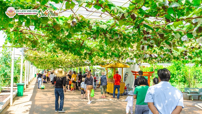 Dịp Lễ này, đến Suối Tiên du khách sẽ được tham quan, trải nghiệm hái trái và thưởng thức các loại trái cây tươi ngon, an toàn ngay tại vườn đang vào mùa thu hoạch: Sung Mỹ, Nho kẹo đen Pháp, Nho Hồng Nhật Bản. Đặc biệt là giàn Dưa Hấu Hoàng Kim, Dưa Hấu Ngọc Bích được trồng dưới rừng dừa lộng gió tạo nên điểm đến độc đáo ngay giữa lòng Sài Gòn.